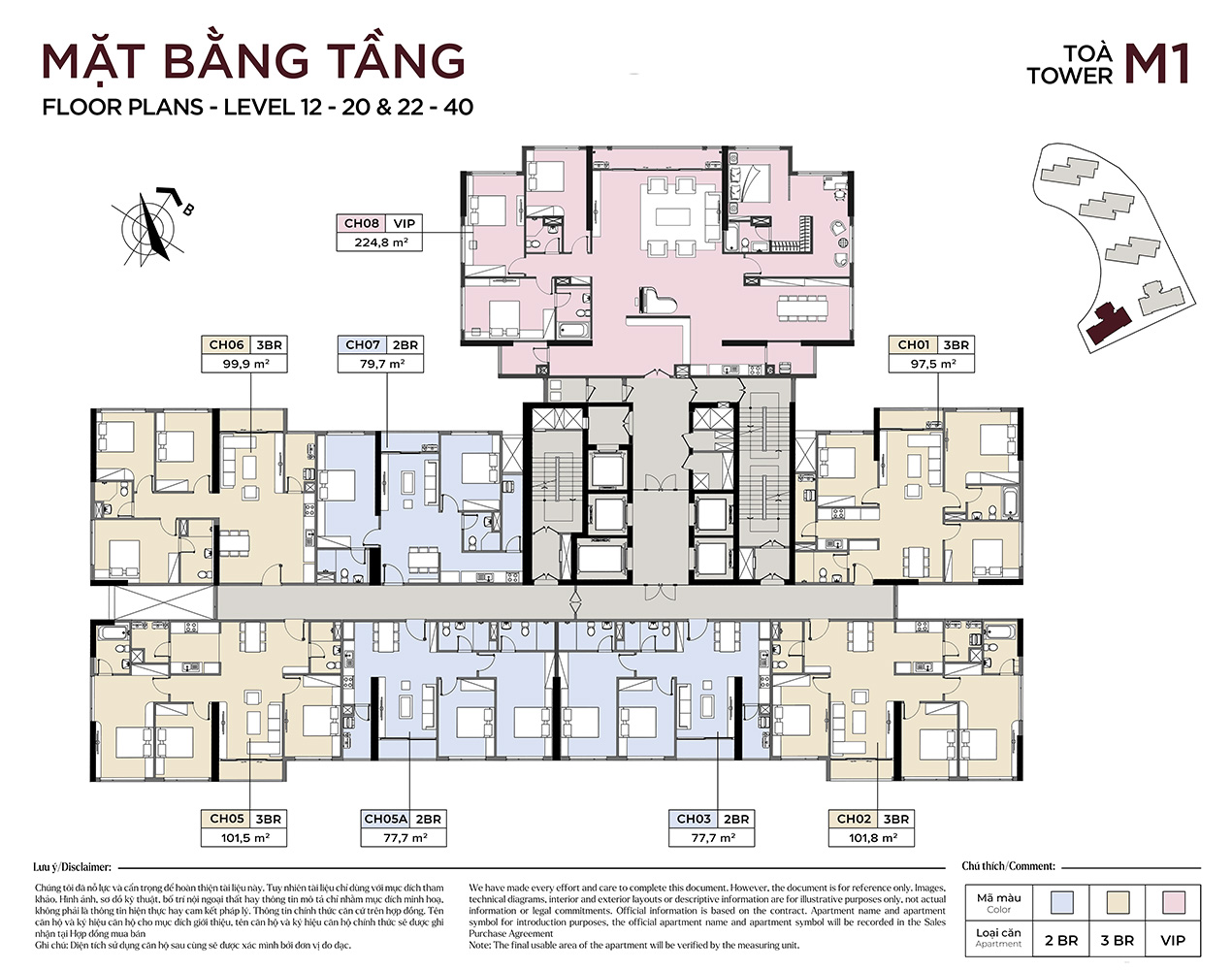5 Tòa chung cư – 6 Tầng khối đế – 3 Tầng hầm – 40 Tầng căn hộ